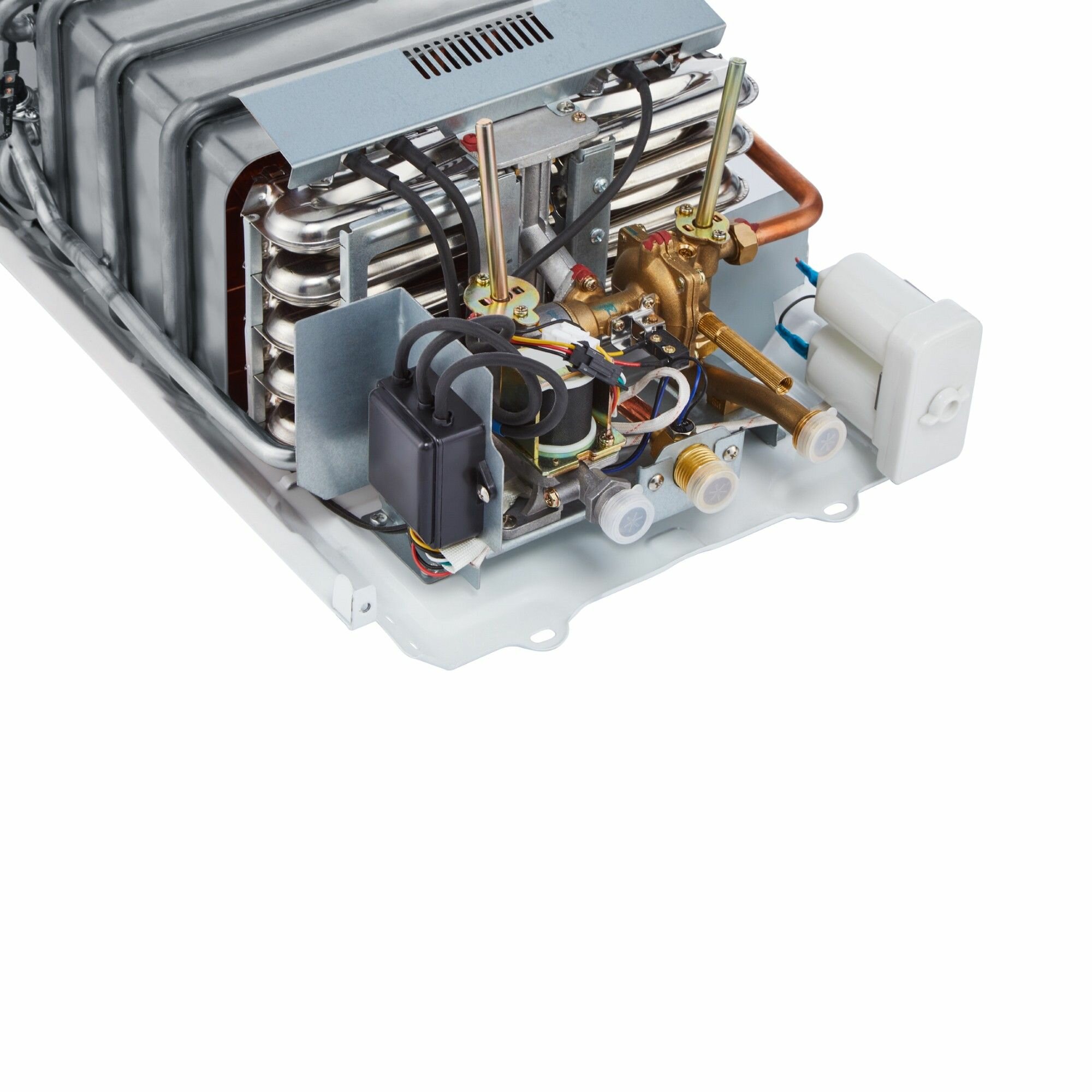 | Дополнительная информация | Номинальное давление природного газа: 13 мбар; Подсветка дисплея; Расход природного газа, максимальный (м3/час): 2; Тип батареек: 2хD (LR20/R20); Гарантийный документ: Гарантийный талон; Диаметр дымохода (мм): 110; Тип дисплея: Информативный LED; Тип камеры сгорания: Открытая камера; Форма корпуса: Прямоугольная; Материал горелки: Нержавеющая сталь; Материал теплообменника: Медь; Область применения: Бытовое оборудование (для домашнего использования); Розжиг горелки: Электронный; Датчик тяги дымохода (отключает подачу газа); Контроль наличия пламени (отключает подачу топлива); Количество режимов нагрева: Бесступенчатая регулировка мощности; Набор крепежных элементов в комплекте; Макс. давление в водопроводе (бар): 8; Мин. давление в водопроводе (бар): 0,15; Регулировка температуры; Точность установки температуры: 1,0 °С; Материал внешнего корпуса: Металл; |