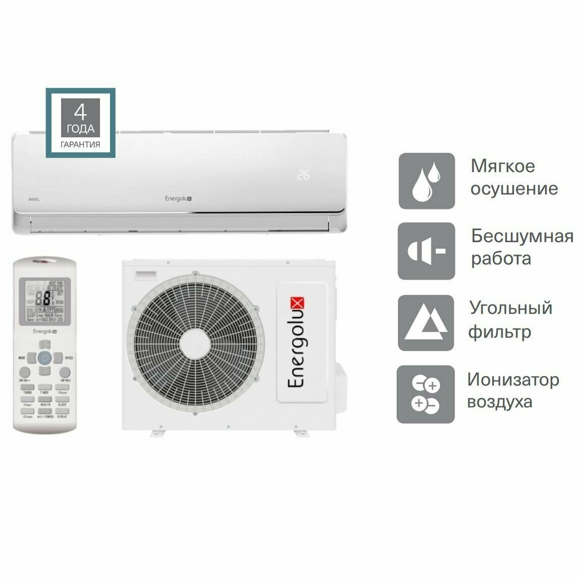Сплит-система Energolux SAS12L4-A Lausanne, настенный кондиционер воздуха для дома, белый ( для помещения до 35 кв. м)