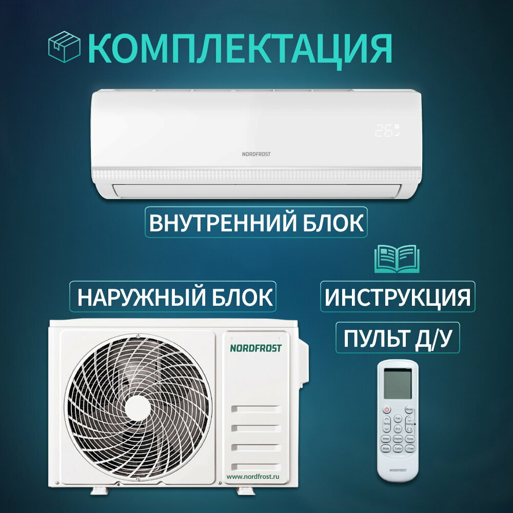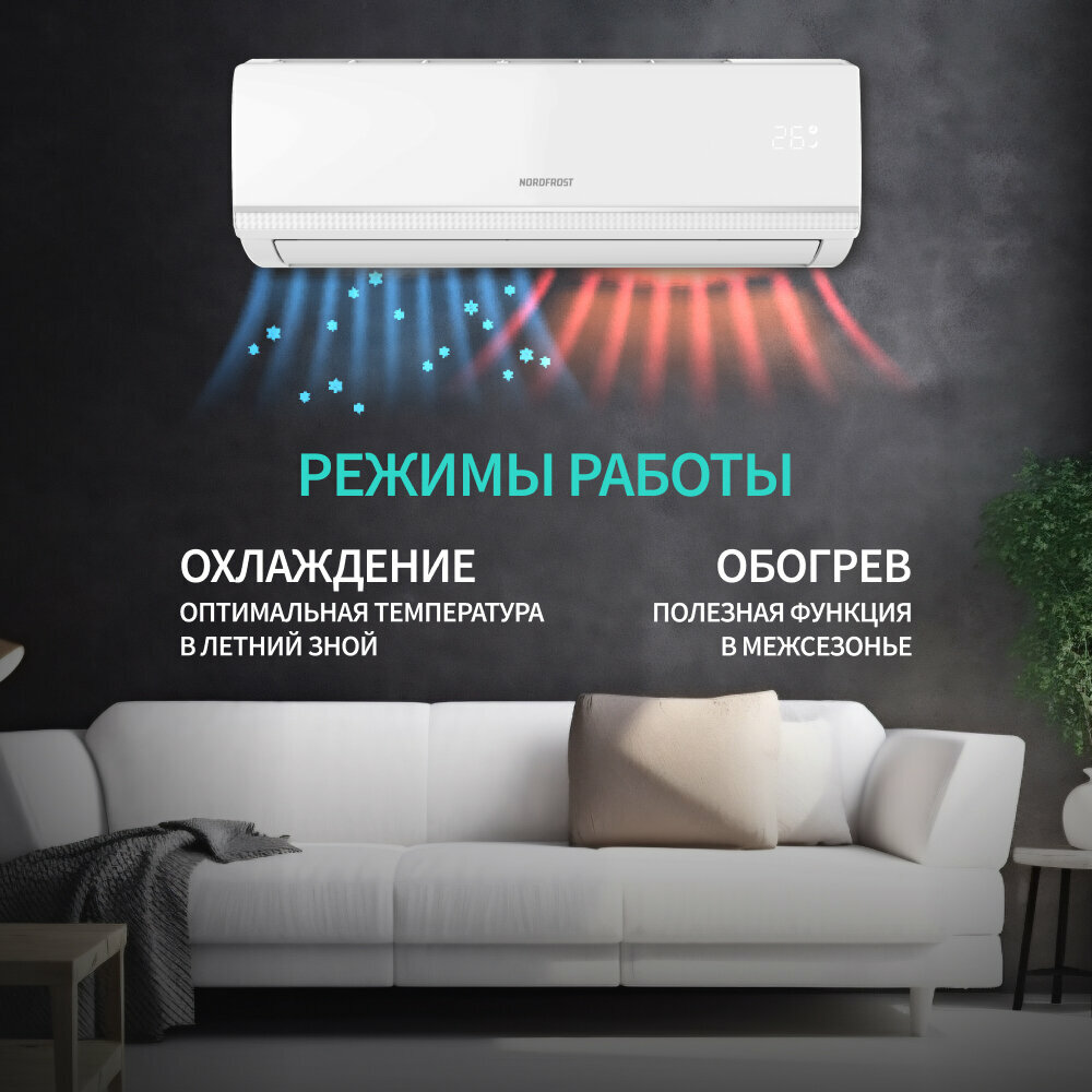 10 цен на Сплит-система NORDFROST i-12 QUB, инвертор, хладагент R32, белый