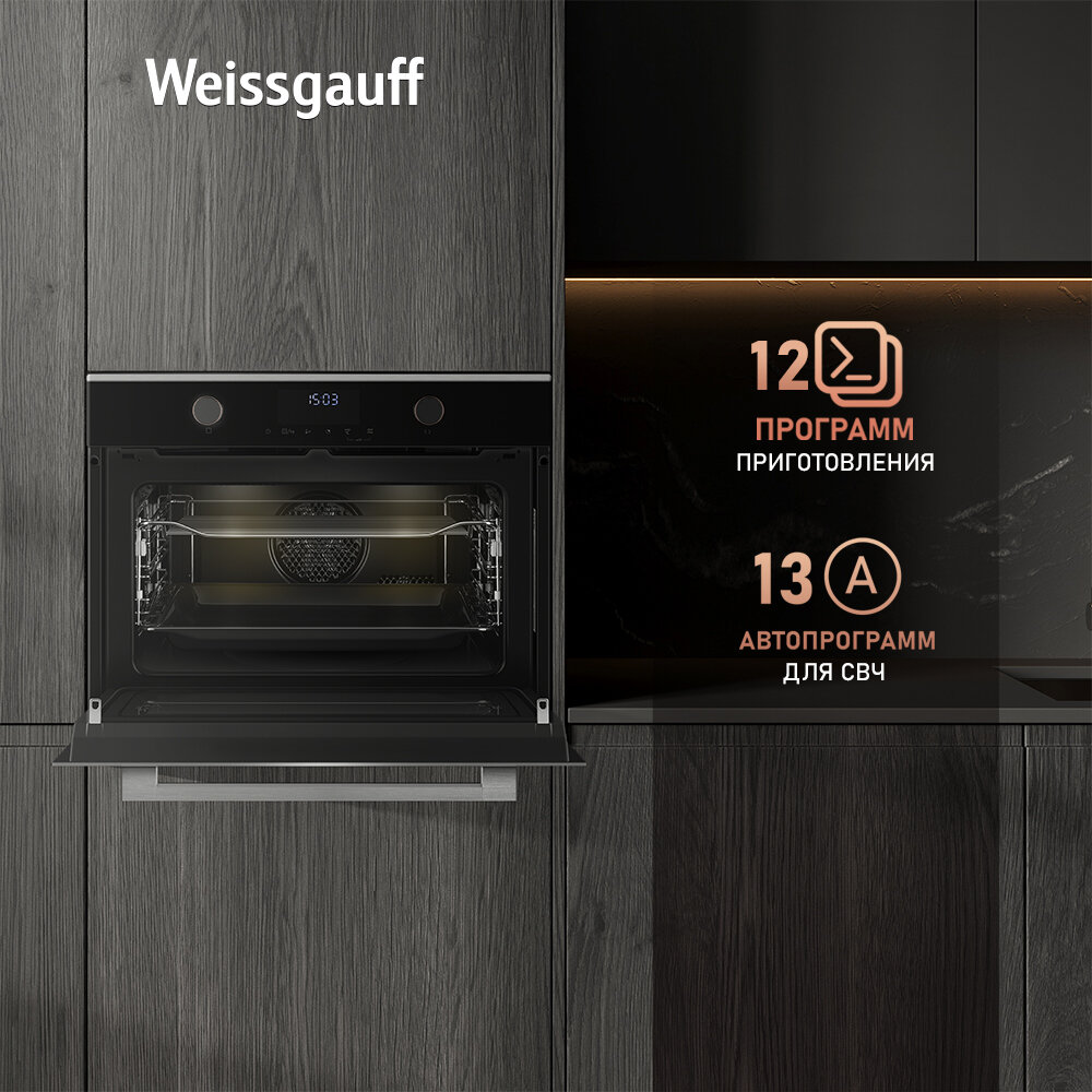 Отзывы на Духовой шкаф компактный с СВЧ Weissgauff OE 4551 DBSX, 3 года гарантии с СВЧ, Объем 50 литров, Блокировка от детей, Эмаль SMART CLEAN