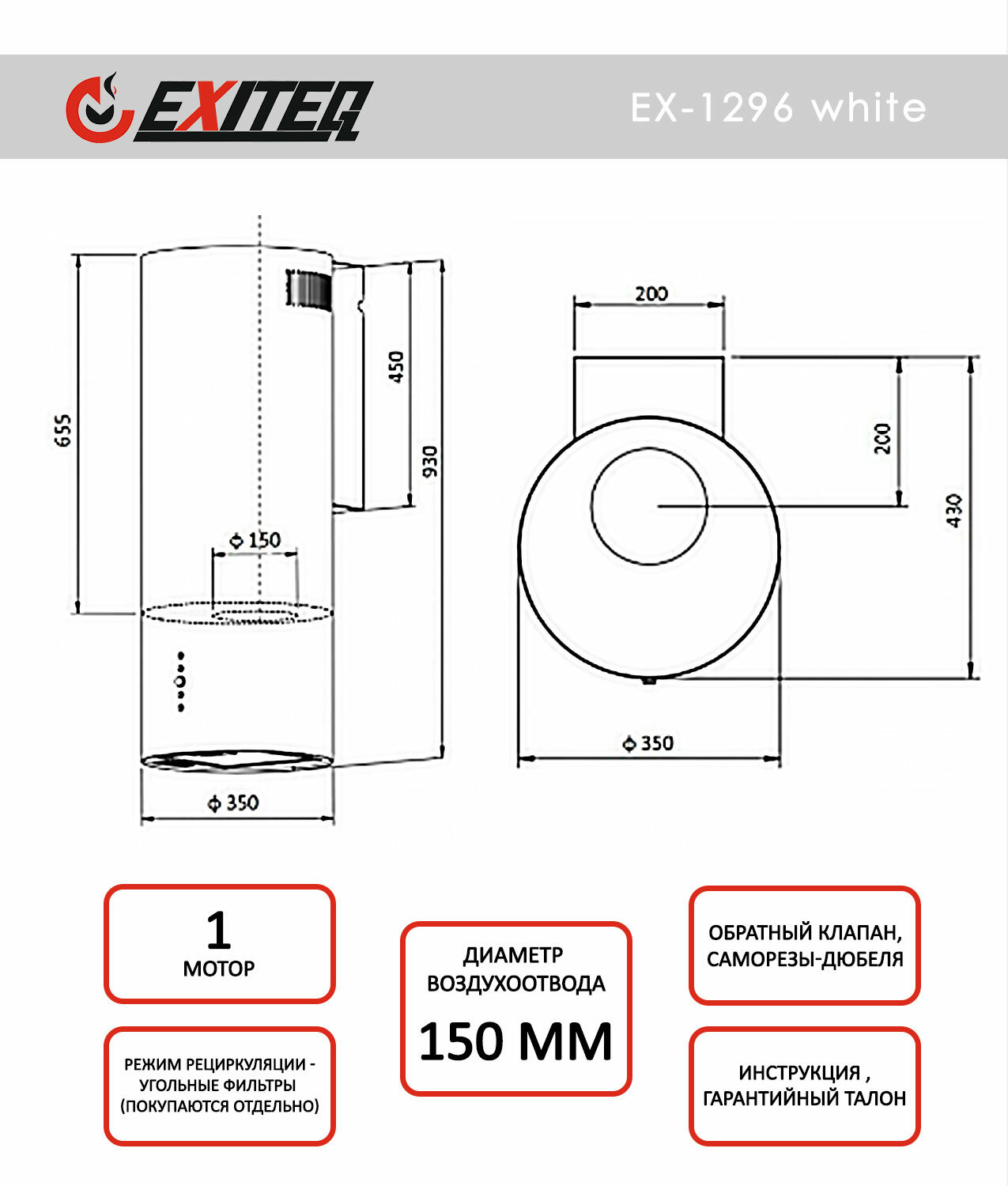 Вытяжка кухонная Exiteq EX-1296 white информация: