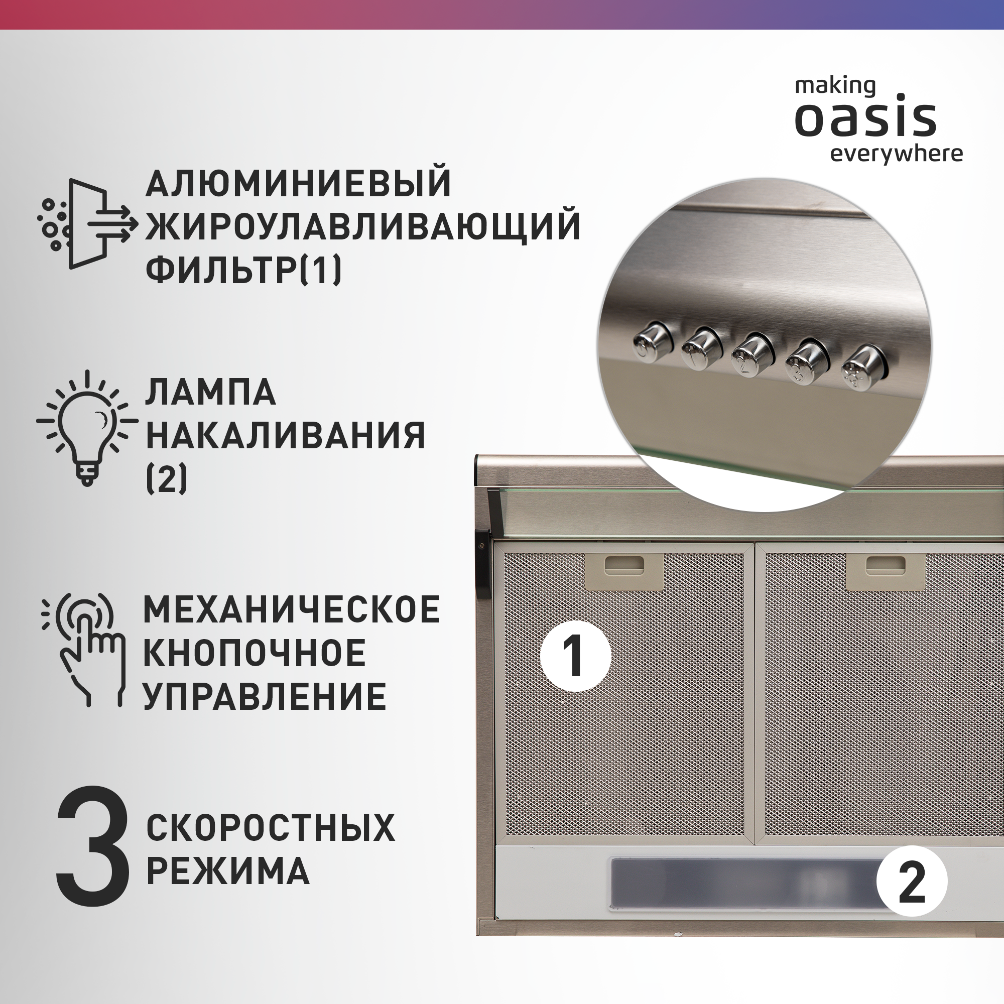 Отзывы на Вытяжка кухонная на 60 см подвесная making Oasis everywhere UP-60S / вытяжка для кухни