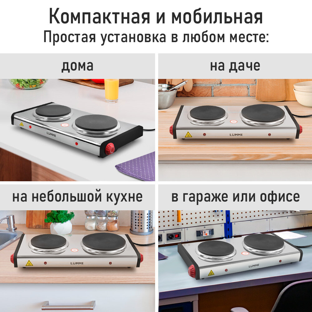 10 цен на Электрическая плитка LUMME LU-HP3701A красный/сталь