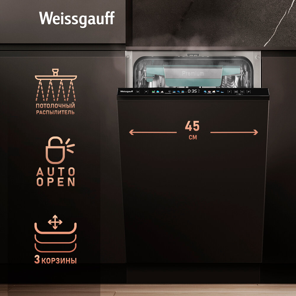 Посудомоечная машина встраиваемая Weissgauff BDW 4533, Wi-Fi Inverter Autoopen