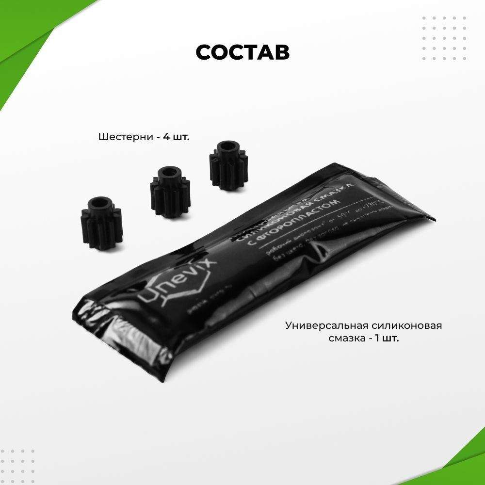 | Подробная комплектация | Шестерня - 3 шт. Универсальная силиконовая смазка - 5 г. |