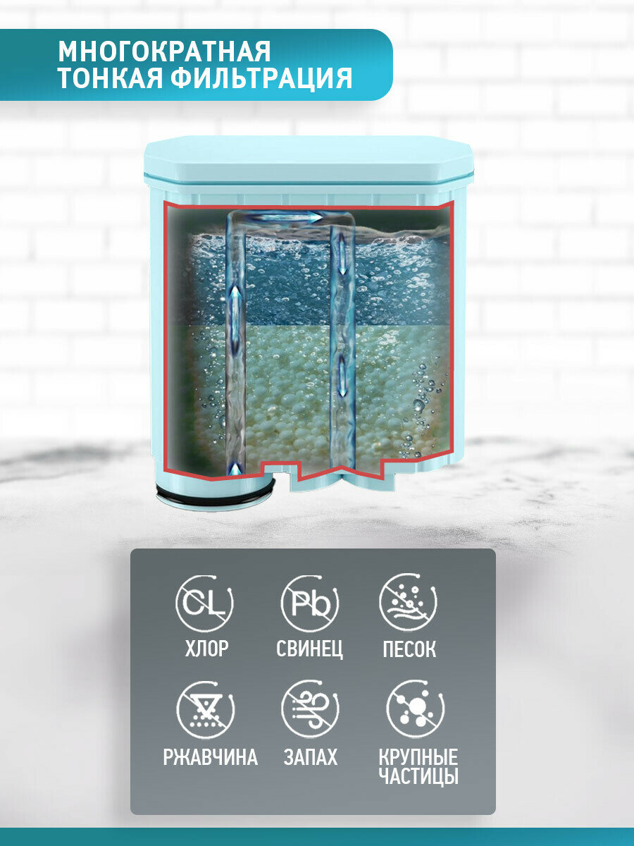 10 цен на Фильтр для кофемашины Philips (Филипс), совместимый с Philips Saeco AquaClean CA6903/10, 2 штуки