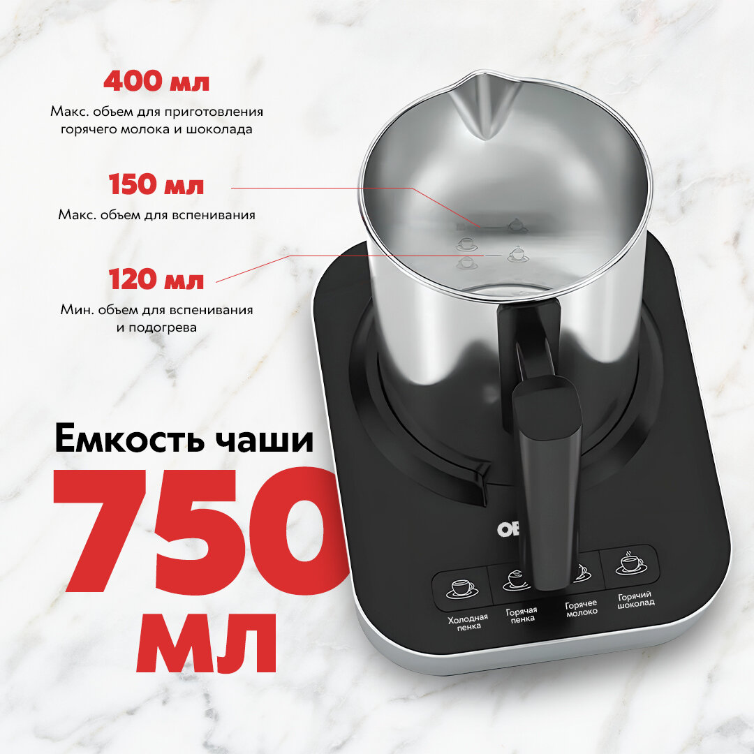 10 цен на Капучинатор и вспениватель молока электрический для капучино Oberhof Milchschumer IX-75 /вспениватель молочной пенки /4 режима / объем 750 мл