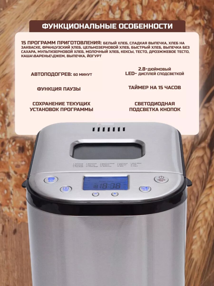 Особенности | выбор цвета корочки / поддержание температуры / таймер |