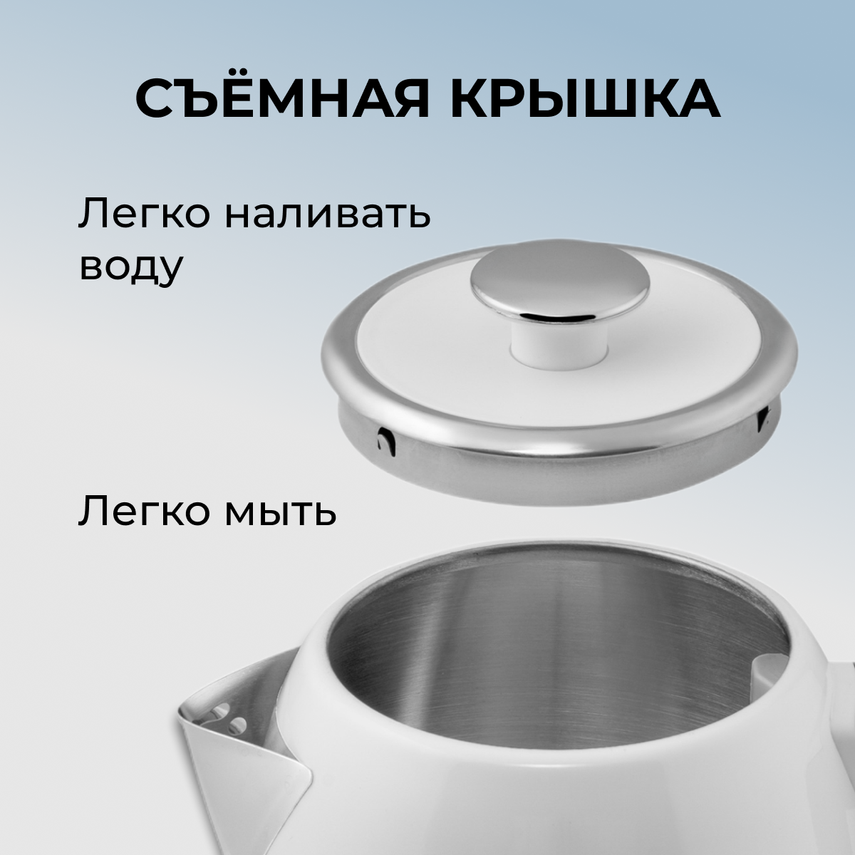 | Особенности | бесшумное закипание / вращение на 360 градусов / отсек для хранения шнура / съемная крышка |