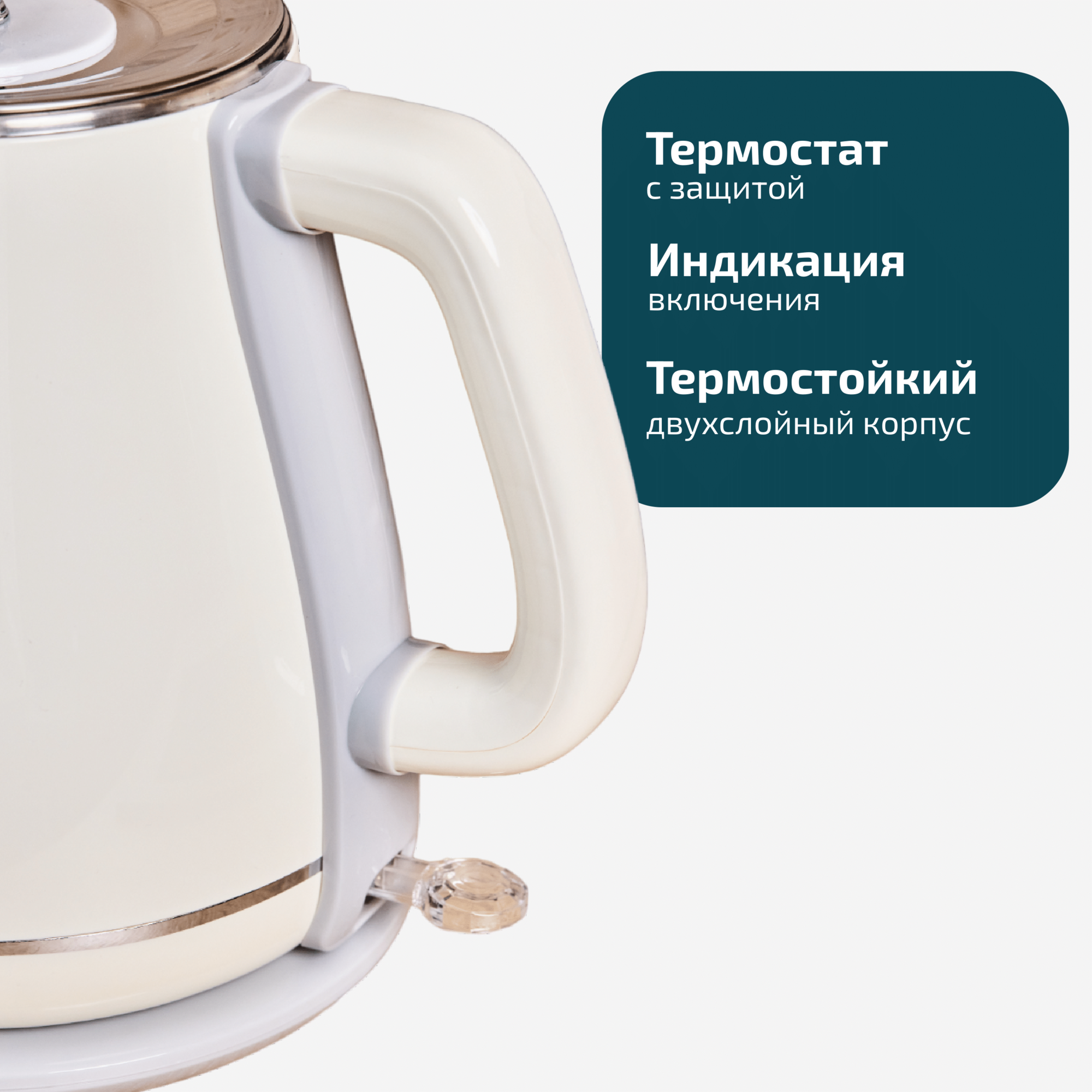Электрический чайник DELTA DL-1109, 2 литра, 1500 Вт, двойные стенки, бежевый