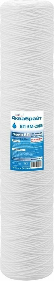 ВП-5М-20ББ Аквабрайт, веревочный картридж из полипропиленового шнура для механической очистки воды, Big Blue 20 (20bb) информация:
