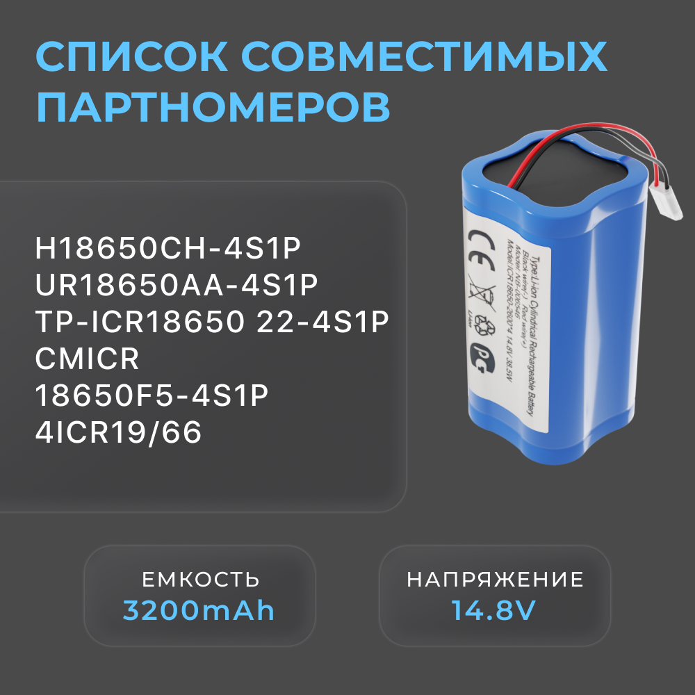 Отзывы на Аккумулятор H18650CH-4S1P для робота пылесоса Xiaomi Mi Robot Vacuum Mop Essential MJSTG1, Mijia G1, SKV4136GL, Tefal Explorer Series 20, 60 (3200mAh)