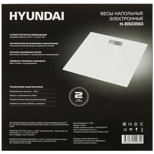 Весы напольные HYUNDAI H-BS03563 белый информация:
