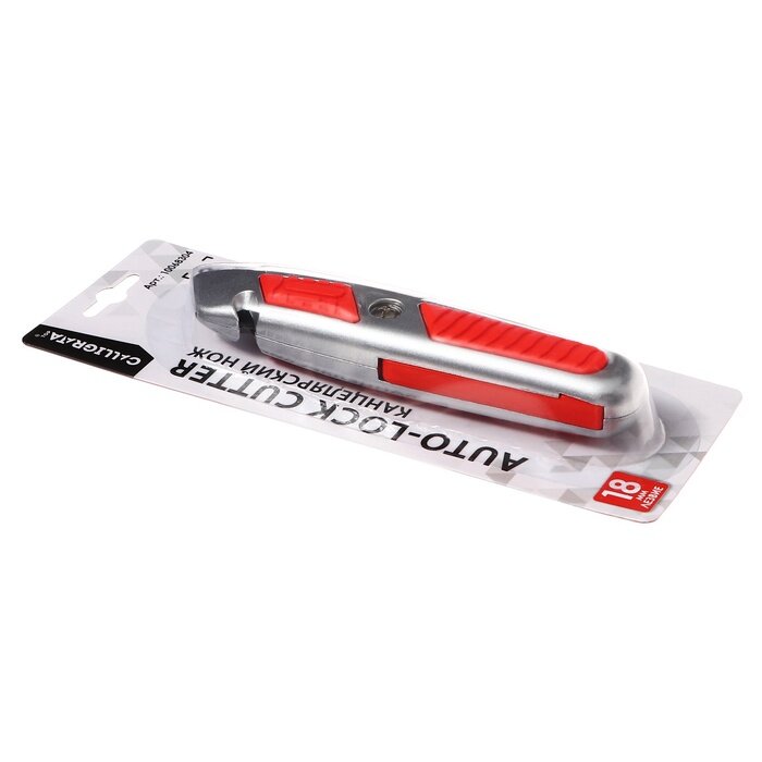 Нож канцелярский, 18 мм, металл с металлическим направляющим фиксатором, на блистере