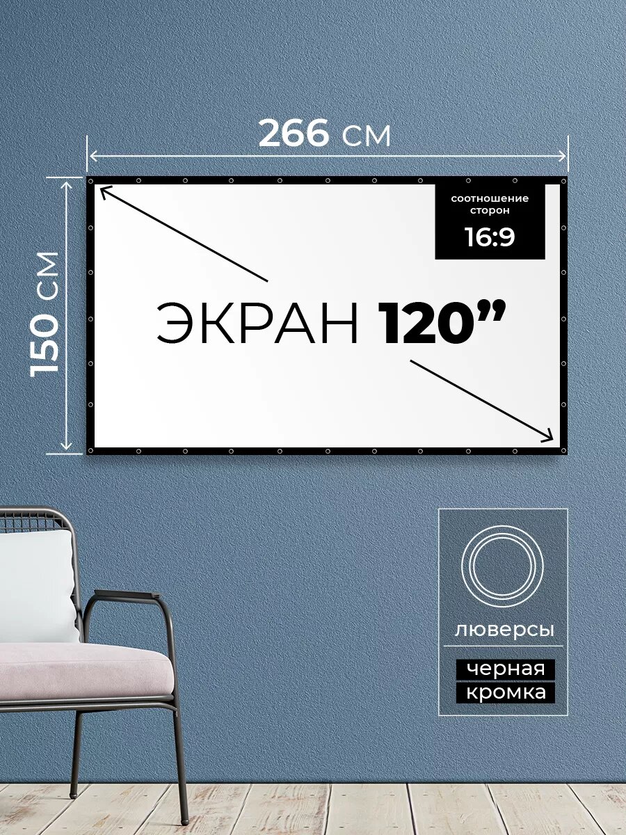 Экран для проектора 120" 16:9 с люверсами и кромкой информация: