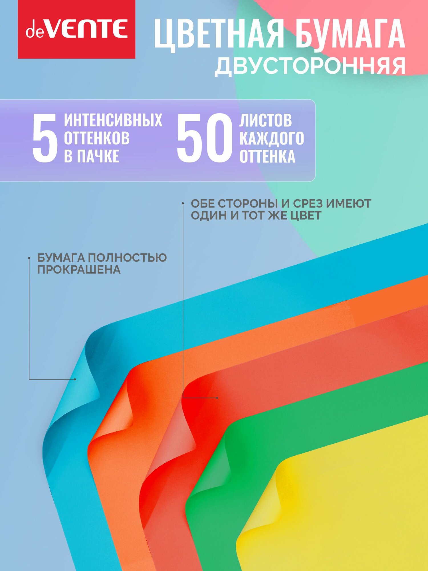 10 цен на Бумага цветная для офисной оргтехники, принтера. Формат A4 250 л, 80 г/м , 5 интенсивных цветов