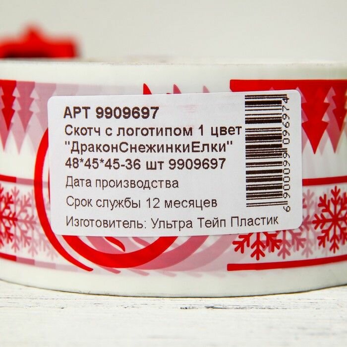 Новогодний скотч с логотипом ДраконСнежинкиЕлки, 48 х 45 м, 45 мкм информация:
