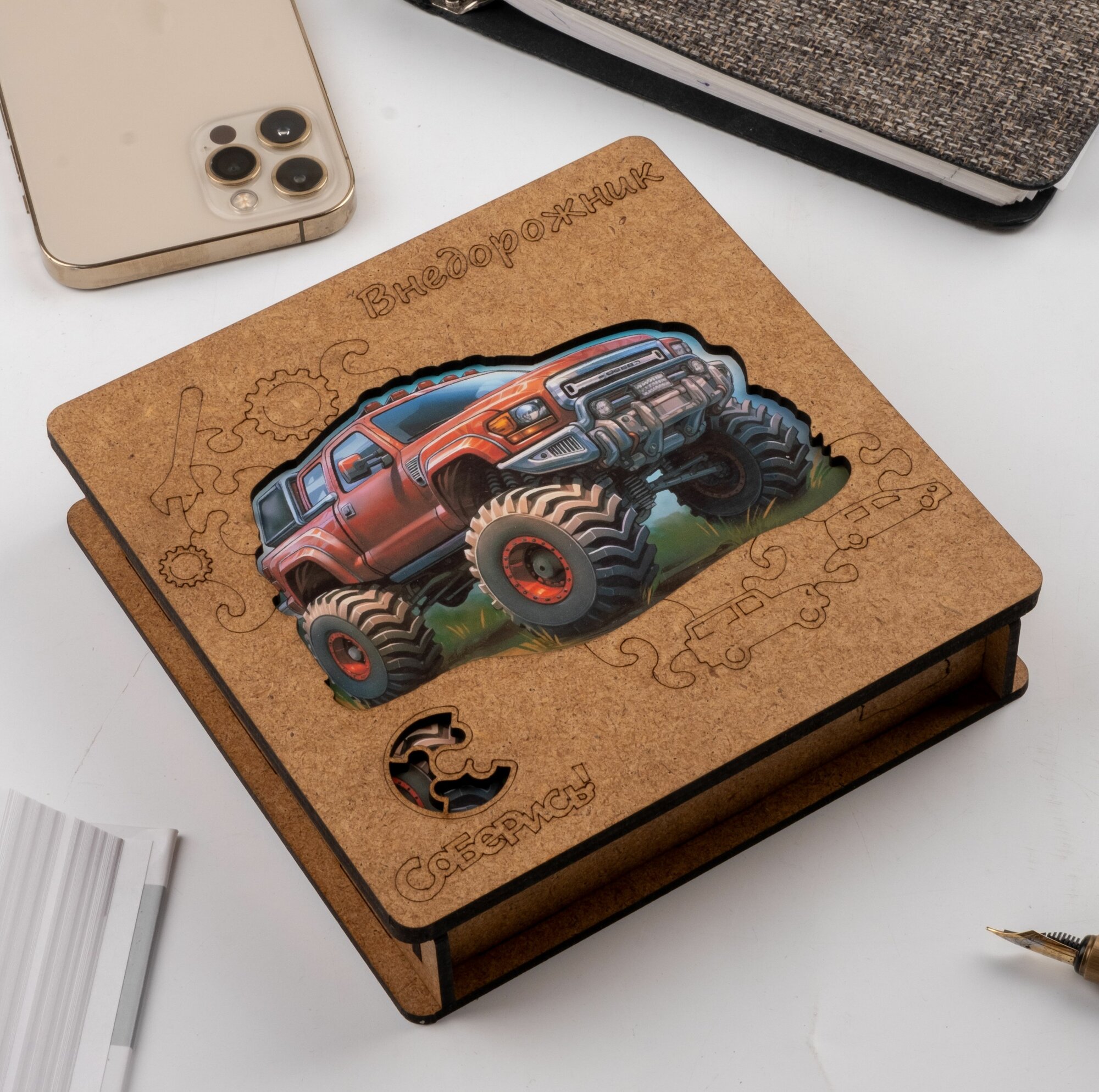 Деревянный пазл фигурный Внедорожник, 100 фигурных деталей информация: