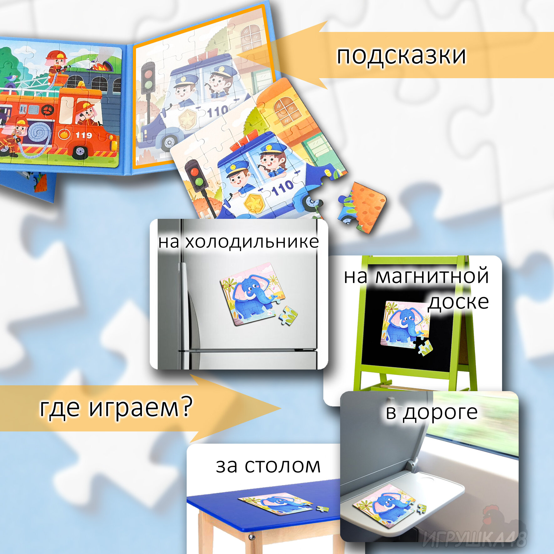 0 отзывов, средняя оценка 0. Чтобы купить «Магнитный пазл для малышей 3 в 1 / Пазл на магнитах игра в дорогу / Набор пазлов разного уровня сложности, 18*18*1,5см, 48 деталей, Транспорт, синий» по лучшей цене мы сканируем авито, алиэкспресс, маркет, озон, савеловский, плеер, горбушку, беру, официальные сайты и находим минимальную. Администрация не несет ответсвенность актуальность цен на Магнитный пазл для малышей 3 в 1 / Пазл на магнитах игра в дорогу / Набор пазлов разного уровня сложности, 18*18*1,5см, 48 деталей, Транспорт, синий, более подробно узнавайте на сайте магазина.