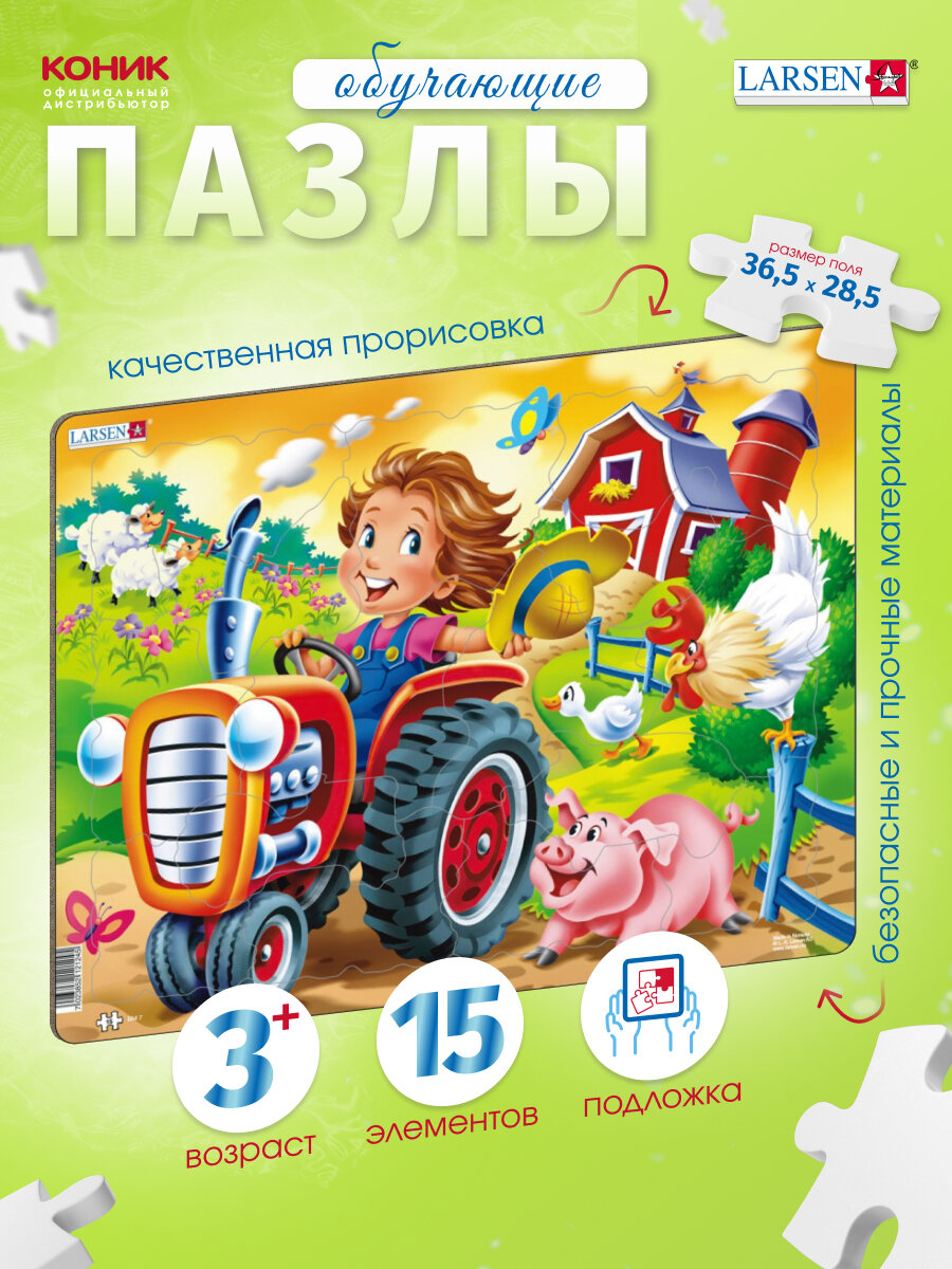 Пазлы Larsen "Дети на ферме: трактор", 15 элементов, BM7 информация: