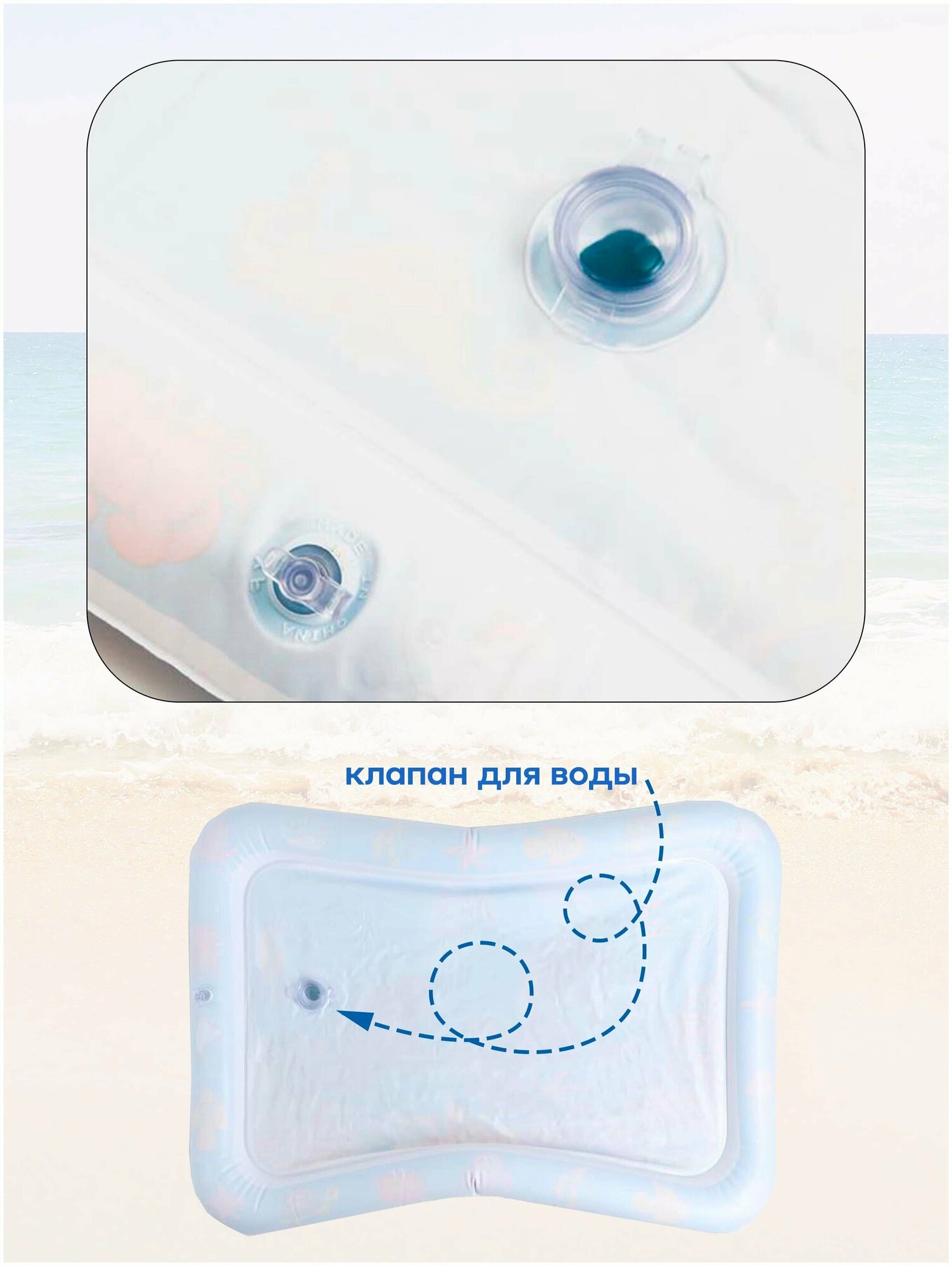 Отзывы на Развивающий водный коврик Дельфин для детей 60х50х8 см. Надувной коврик для малышей с рыбками, водяной Акваковрик для детей, Синий