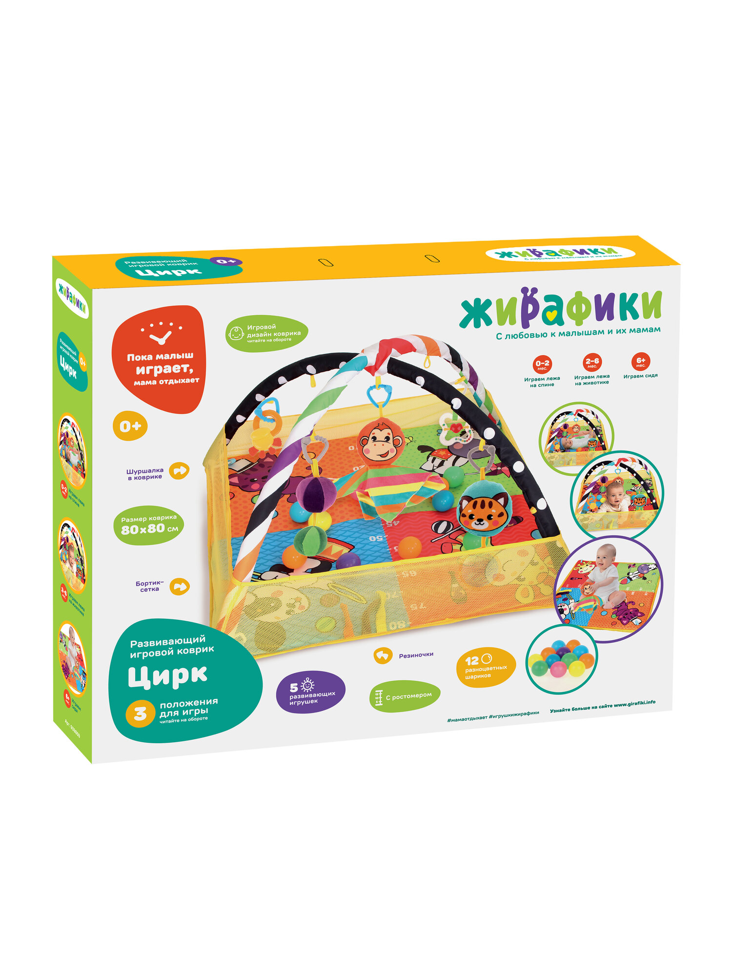 Развивающий коврик для новорожденного с ростомером Цирк Жирафики информация: