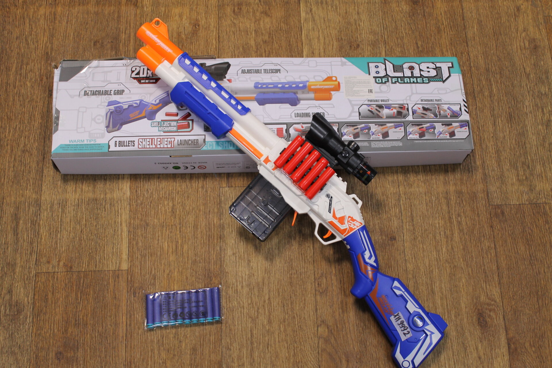 Игрушечный дробовик Нерф с прицелом, выбросом гильз и комплектом мягких патронов / бластер с мягкими пулями