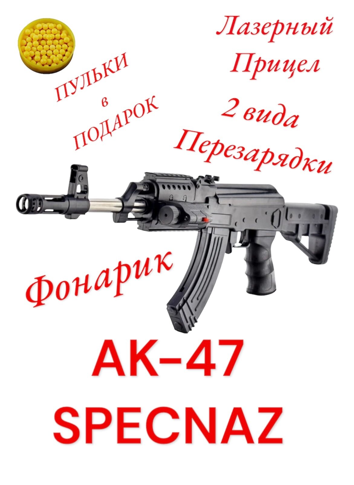 Отзывы на Детский пневматический автомат Калашникова АК-47 «SPECNAZ» c лазерным прицелом,фонариком и съёмным прикладом (два вида перезарядки)
