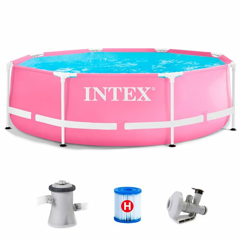 10 цен на Каркасный бассейн Intex 28292 Pink, розовый 244х76см, 2843л, фильтр-насос 1250л/ч