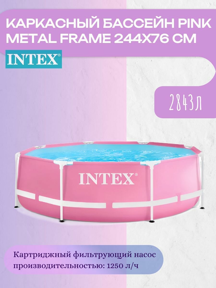 Каркасный бассейн Intex 28292 Pink, розовый 244х76см, 2843л, фильтр-насос 1250л/ч информация: