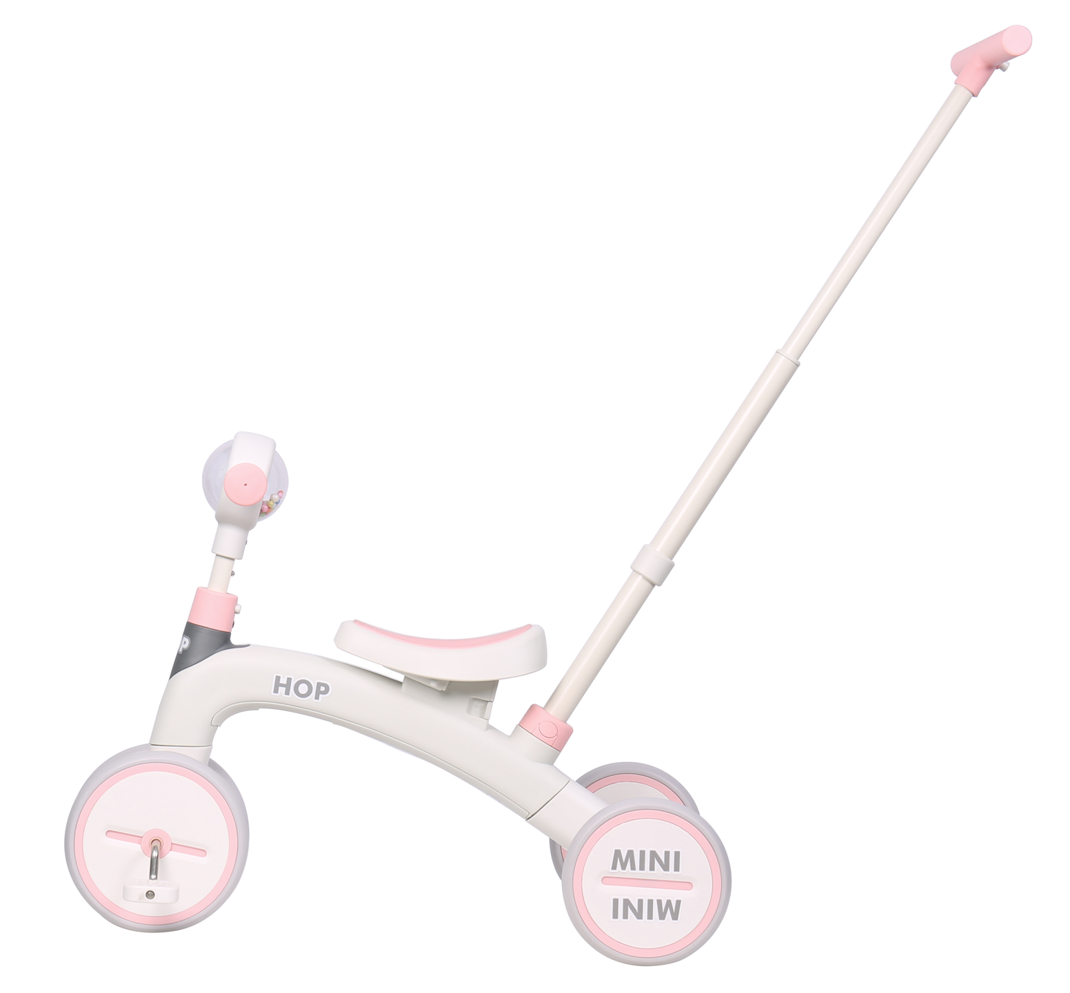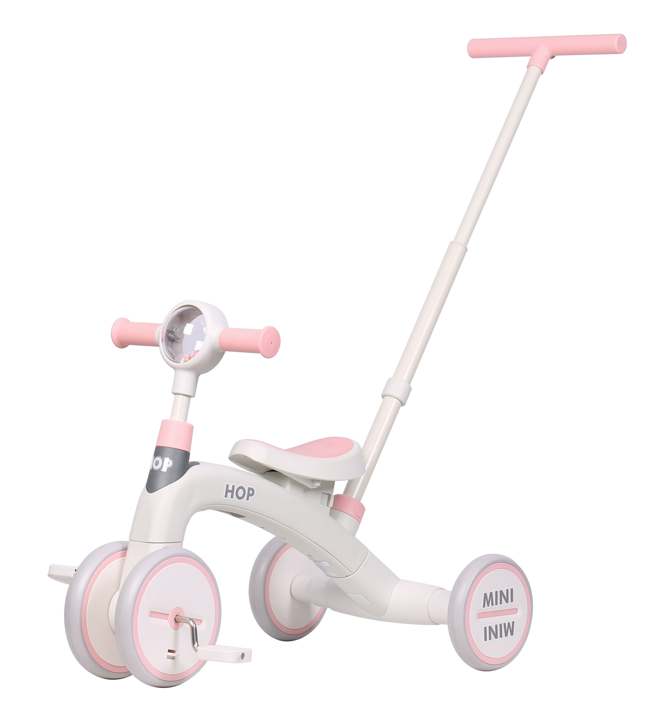 Беговел детский велосипед трехколесный каталка толокар с ручкой 4 в 1 HOP Mini бежевый/розовый информация: