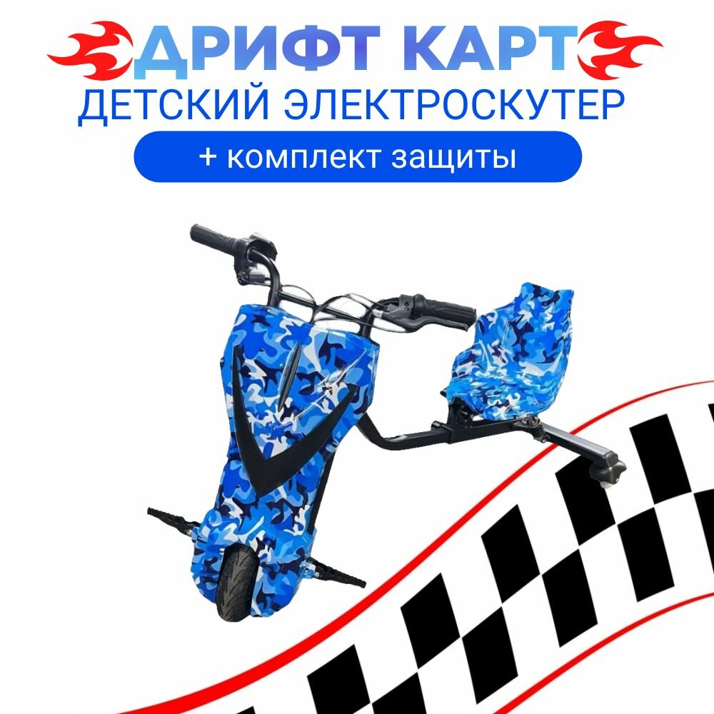Электроскутер Дрифт Карт Griffin, синий камуфляж (комплект защиты в подарок) информация: