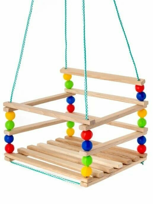 10 цен на Качеля деревянная, подвесная, с цветными шариками