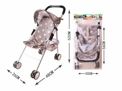 Коляска - трость для кукол, металлическая, высота ручки 52 см, с козырьком, с корзинкой, 56х30 см информация: