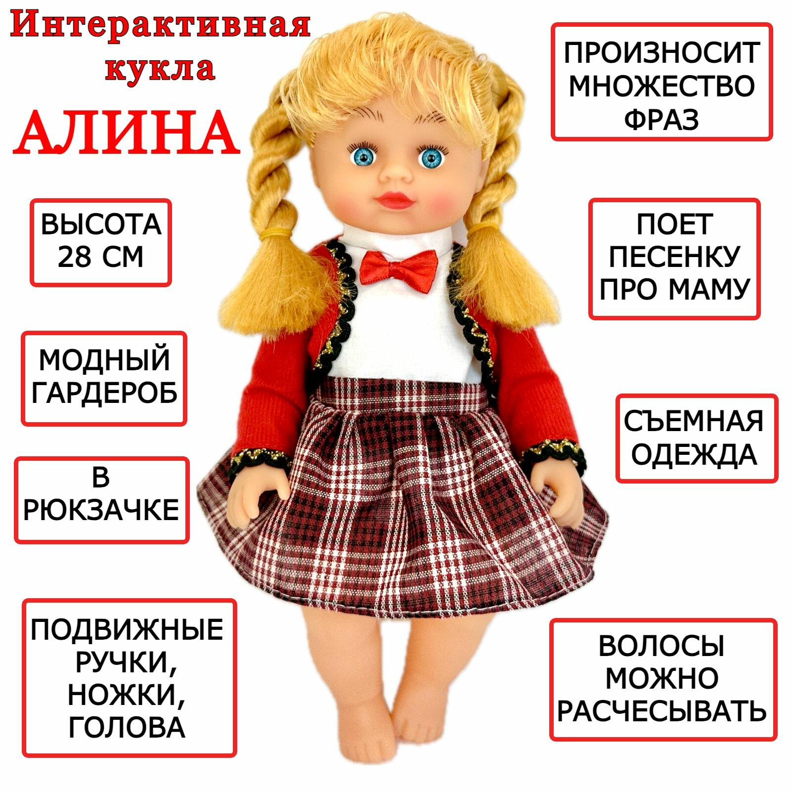 Интерактивная кукла Алина, говорящая, поет песню про маму, в сумочке-рюкзачке, 33 см 1 165 ₽