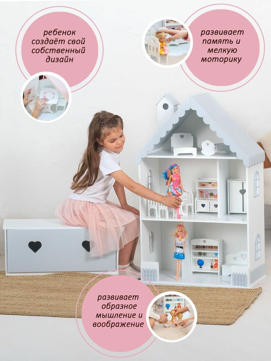 Кукольный домик деревянный с ящиком Луиза для кукол до 32 см бело-серый информация: