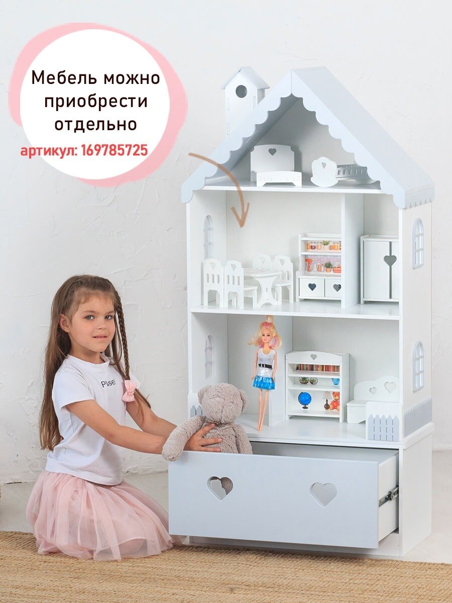 10 цен на Кукольный домик деревянный с ящиком Луиза для кукол до 32 см бело-серый