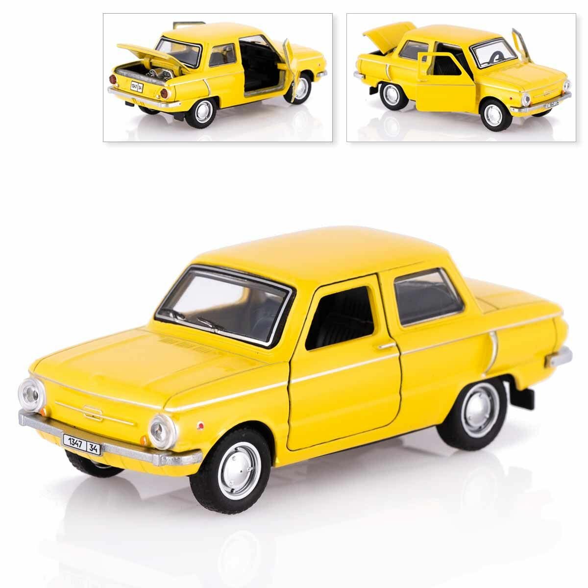 Машинка ЗАЗ 968А, коллекционная, металлическая, желтый, Технопарк, 12 см информация: