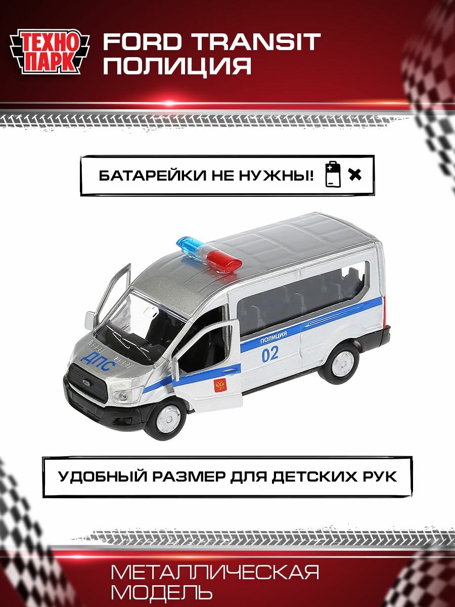 Машинка игрушка детская для мальчика детская Ford Transit Полиция Технопарк модель автомобиля коллекционная инерционная металическая 12 см