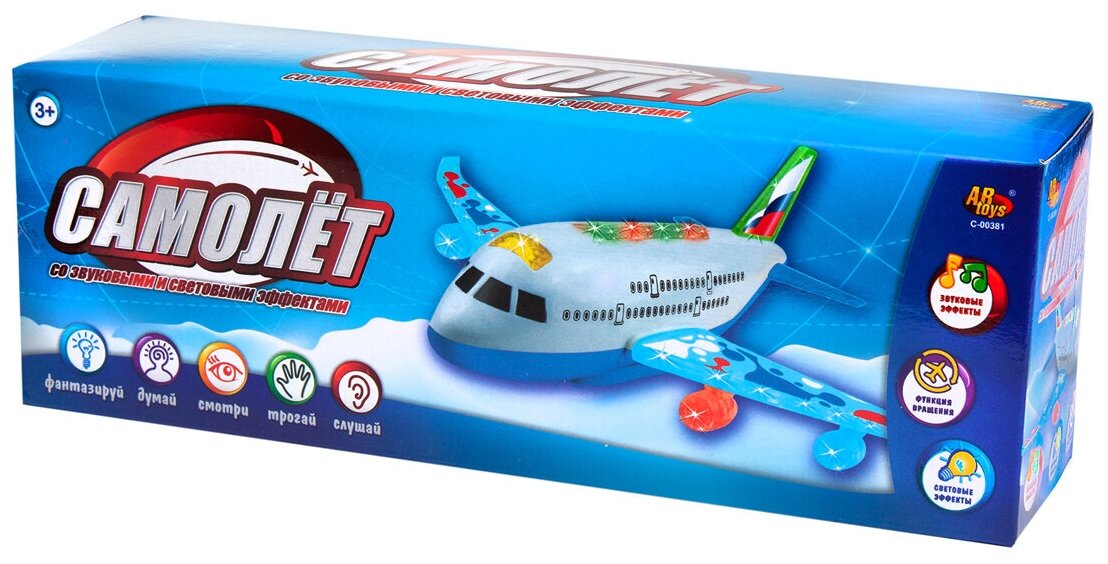 Отзывы на Самолет пассажирский ABtoys электромеханический, со световыми и звуковыми эффектами, в коробке C-00381