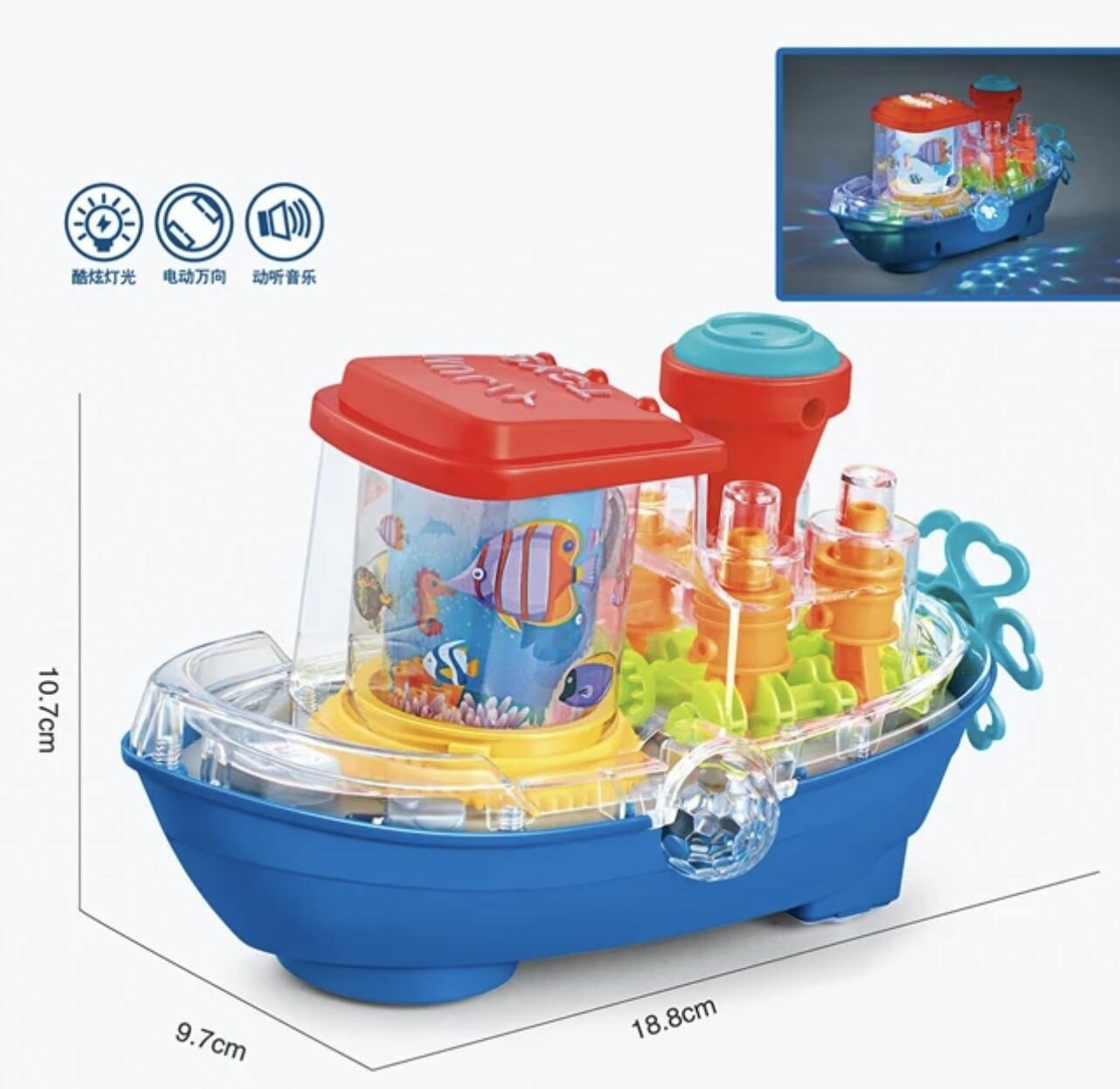 Прозрачный катер со световыми и звуковыми эффектами Gear Train информация: