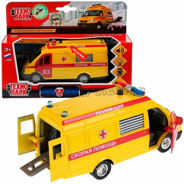 Машинка игрушка детская для мальчика Технопарк Газель Скорая Помощь инерционная