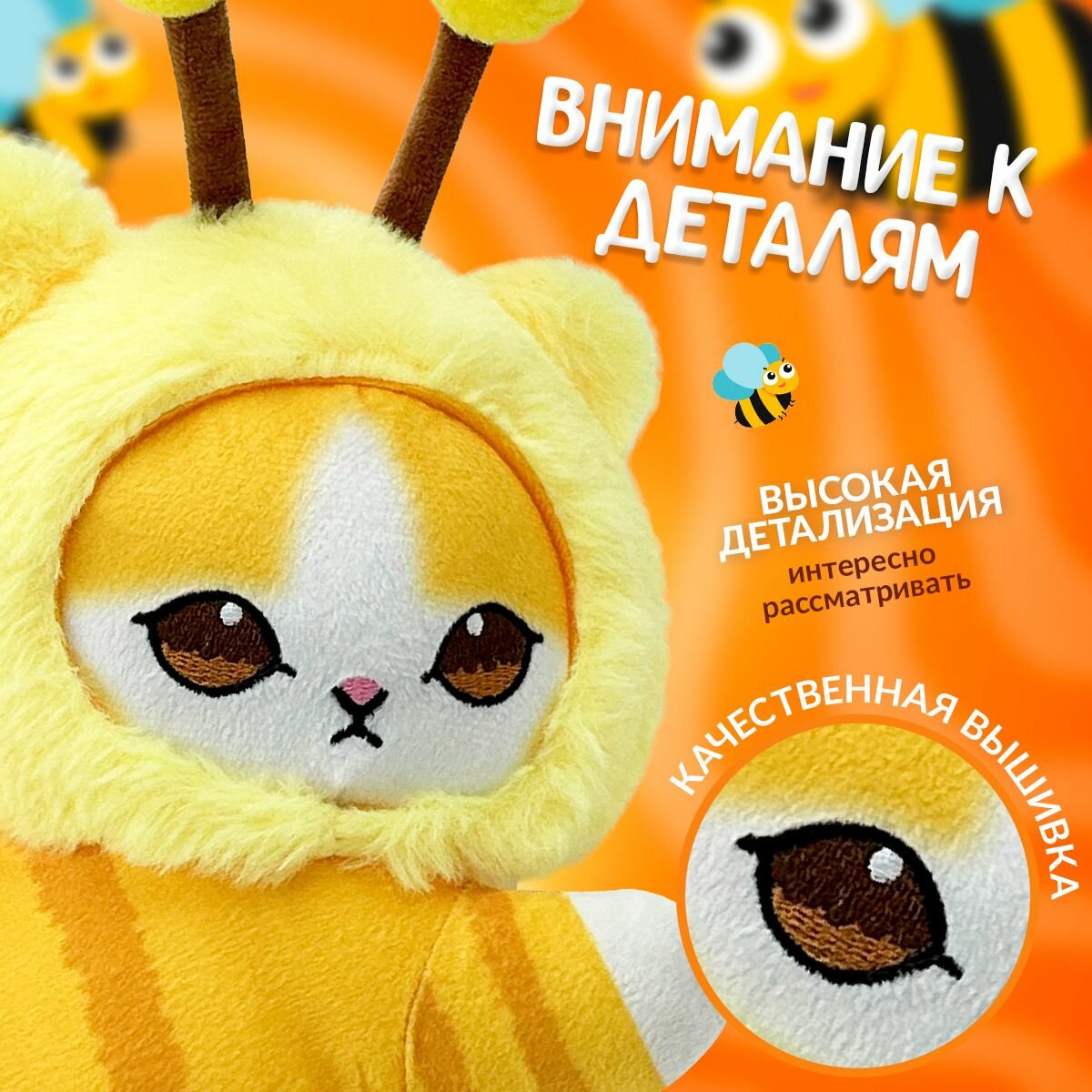 10 цен на Мягкая игрушка Кошка пчёлка 30 см Mofusand cat / Кот подарок на 8 марта девушке, девочке, подруге, маме