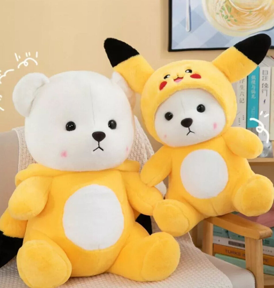 Отзывы на Мягкая игрушка "Мишка в костюме Пикачу" 28 см / Игрушка обнимашка антистресс плюшевый медведь в костюме с капюшоном