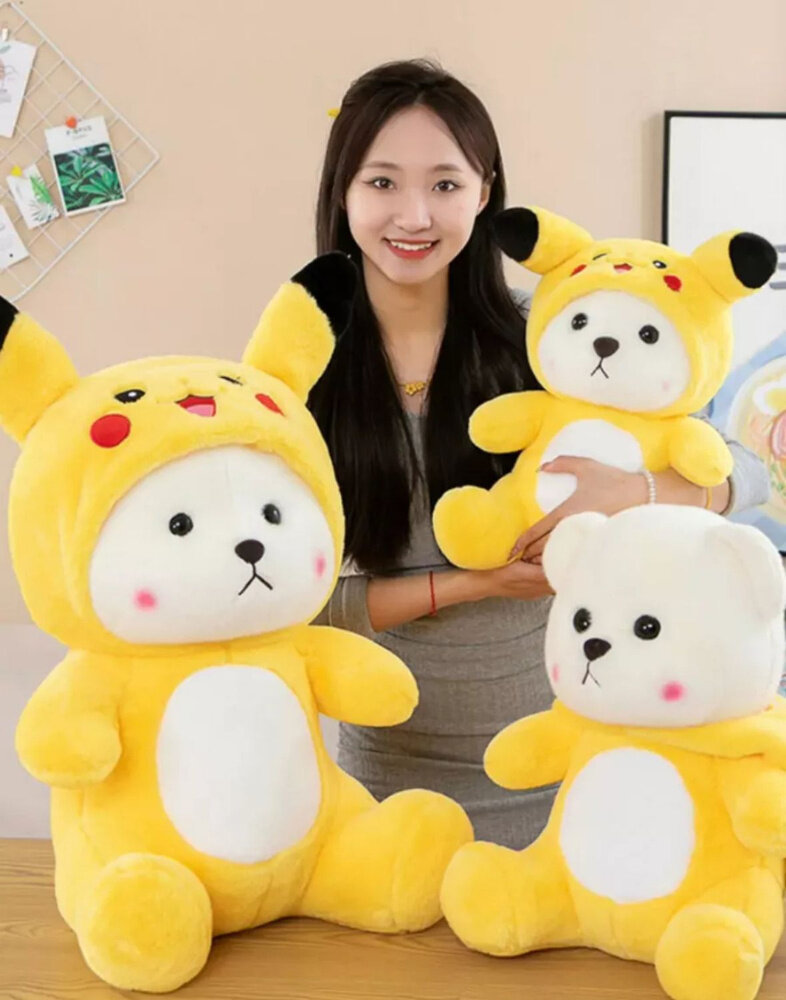 Мягкая игрушка "Мишка в костюме Пикачу" 50 см / Игрушка обнимашка антистресс плюшевый медведь в костюме с капюшоном 1 349 ₽