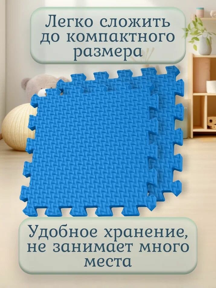 Мягкий коврик-паззл "Eco Cover" с массажной поверхностью, 33x33см, 9 сегментов, синий информация: