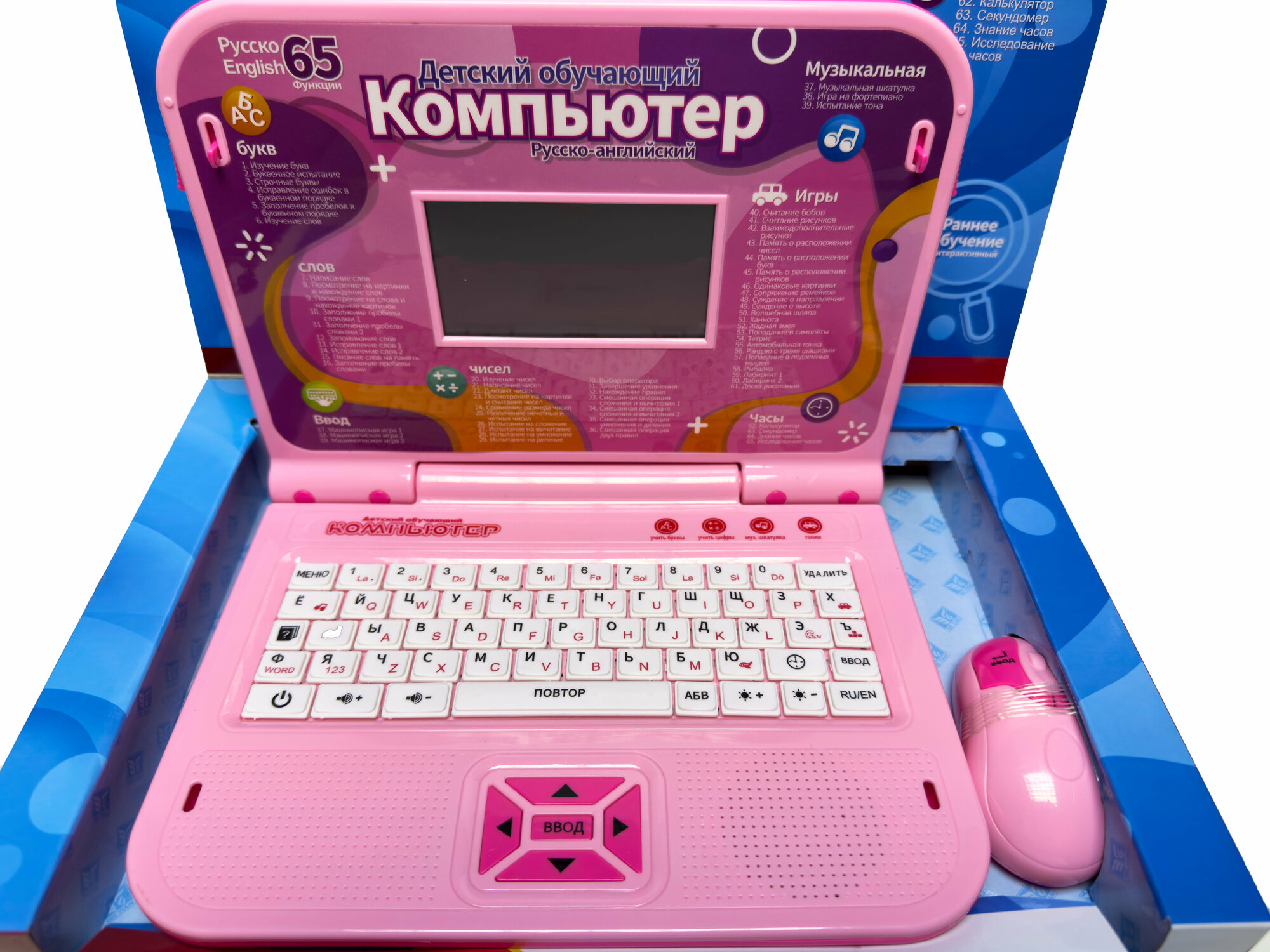10 цен на Детский обучающий компьютер ноутбук с мышкой 130 функций, музыкальный, учит алфавиту, считать, печатать, развивает речь, Розовый