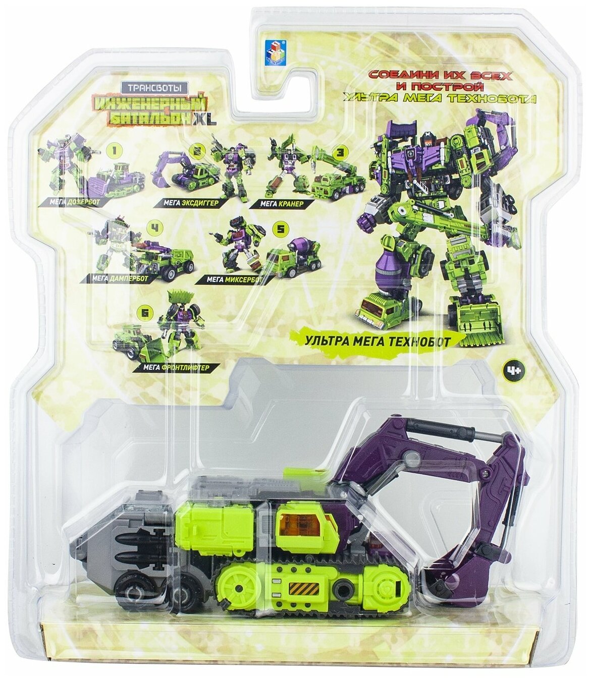 1toy Трансботы "Инженерный батальон XL: Мега Эксдиггер" (блистер, из 6 шт. собирается большой робот) информация: