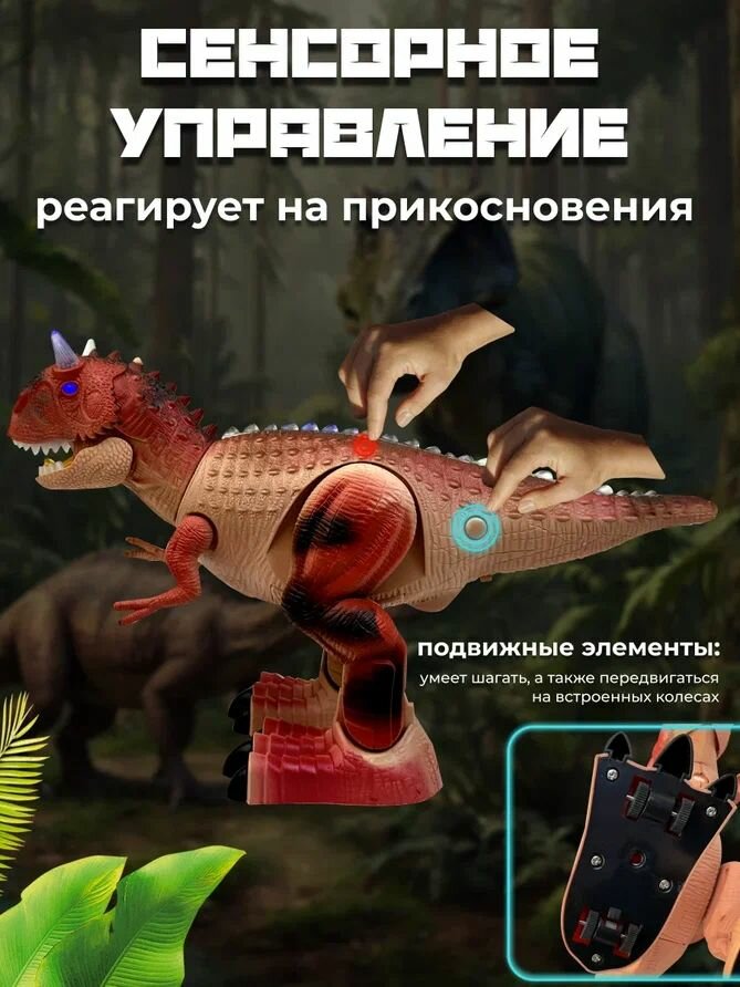 10 цен на Интерактивная игрушка динозавр Аллозавр, сенсор, ходит, рычит, глаза, пасть и гребешок светятся, 33х18х11см