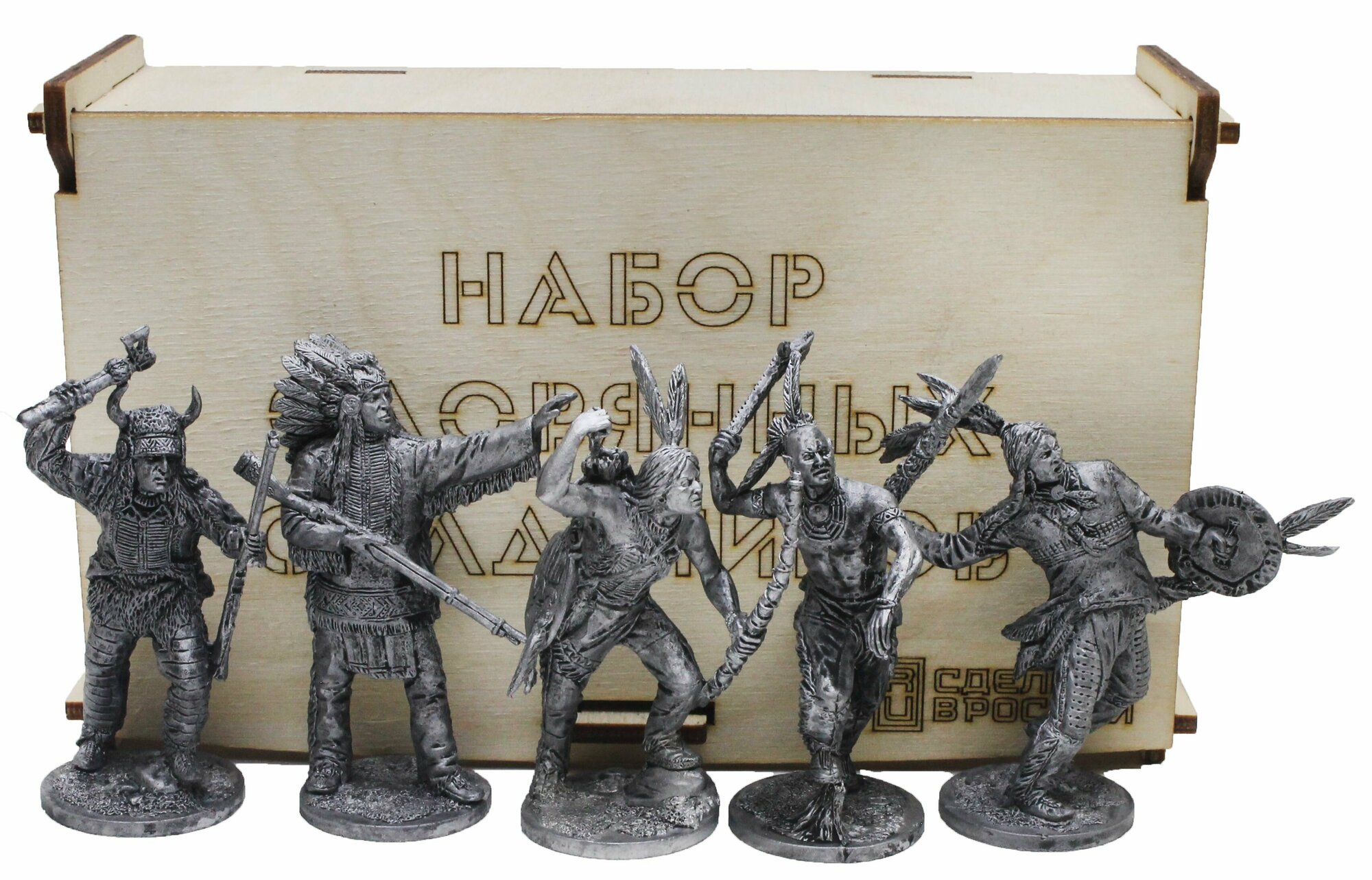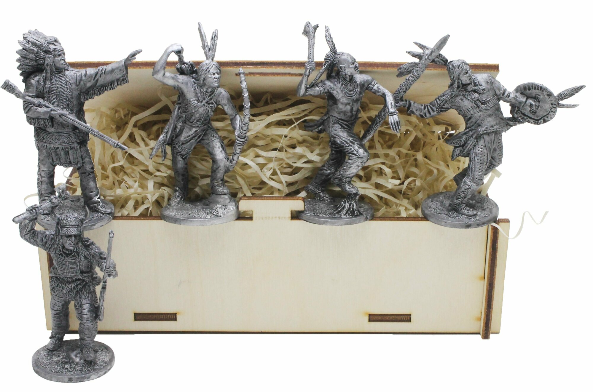 "Дикий Запад: Индейцы" №1ЕК (5 н/к) набор оловянных солдатиков некрашеных в фанерной коробке информация: